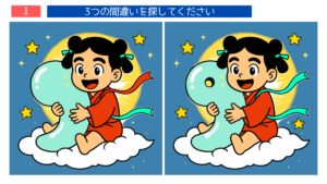 間違い探しは「2つの絵を見比べて違いを見つける」という作業を通じ、注意力・集中力・記憶力を同時に鍛えることができます。毎日少しずつ続けることで、脳を活性化し、認知症予防にもつながるとされています。