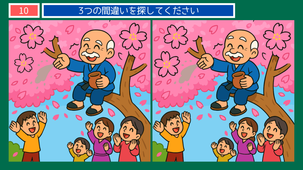 花咲か爺さんの間違い探し|高齢者も楽しめる無料脳トレ&認知症予防